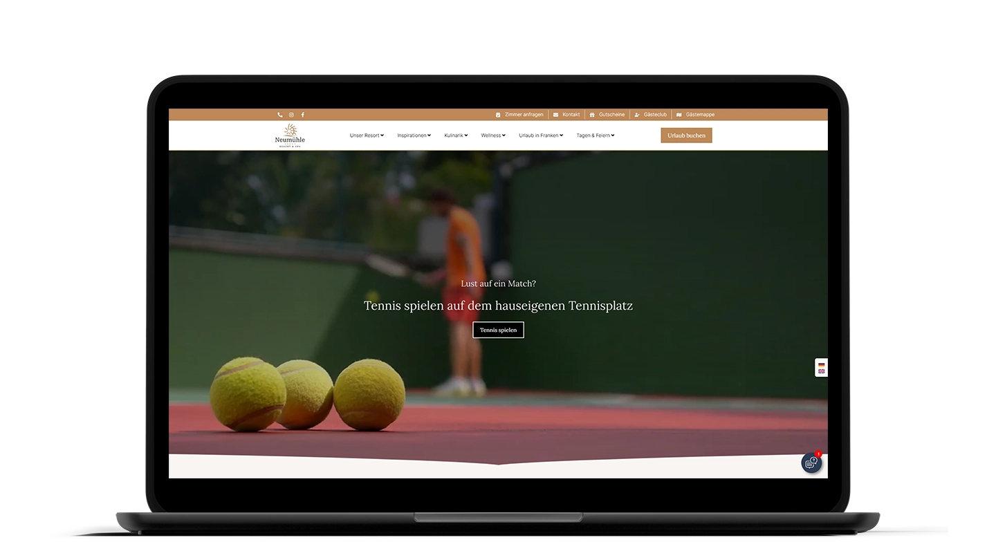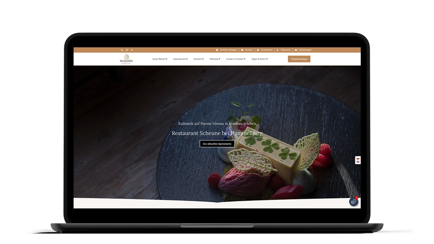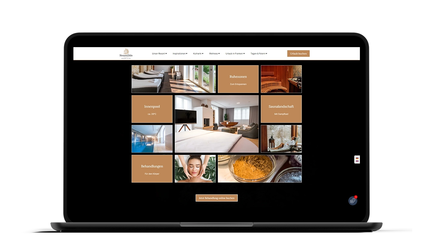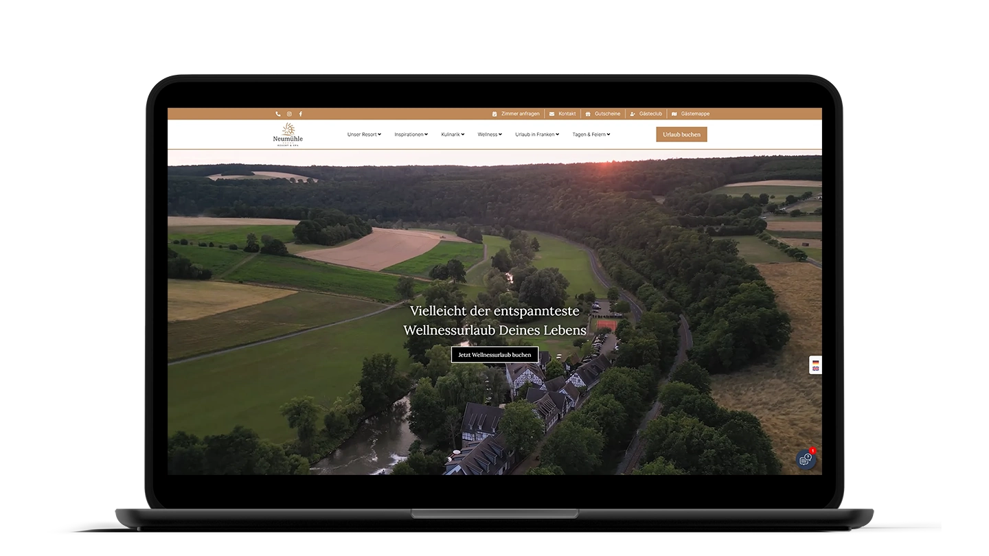 In enger Zusammenarbeit mit meinen Partnern und dem Team des Neumühle Resort & SPA, konnte ich schließlich eine umfassende Hotelwebsite mit Buchungsoptionen und vielen Funktionen auf Basis von WordPress umsetzen.